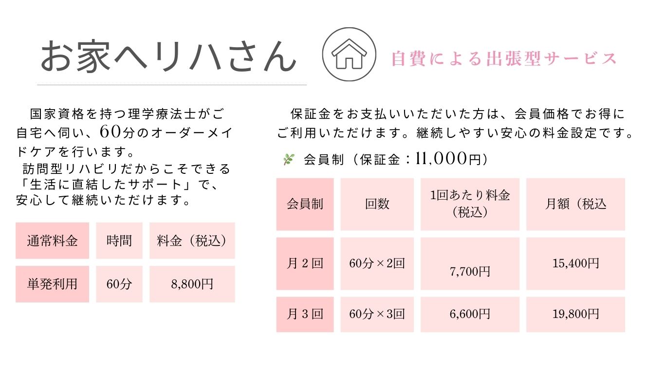 お家へリハさんの「会員料金」をご利用いただくために必要です。
